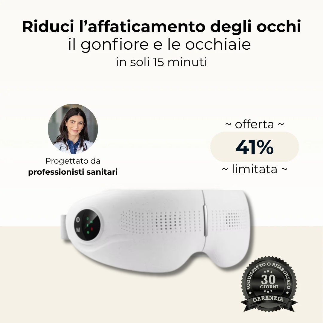 Sollievo e comfort istantanei con questo innovativo massaggiatore oculare che lenisce l'affaticamento degli occhi, allevia il mal di testa e ti aiuta a rilassarti senza sforzo.